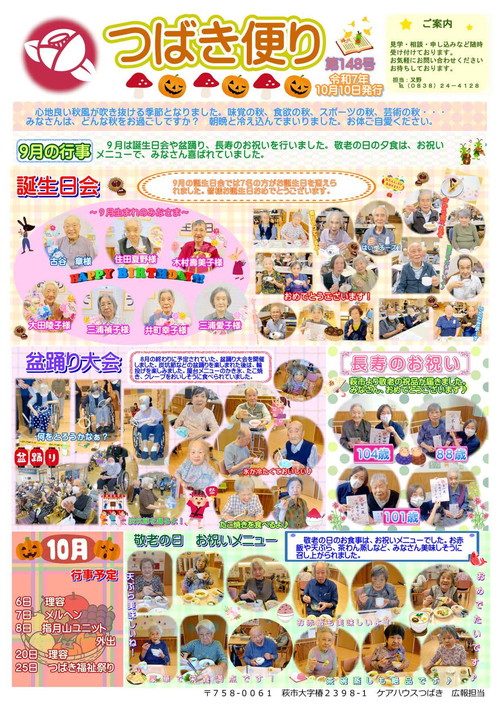 ケアハウスつばきでは、毎月、広報誌の『つばき便り』を発行しております