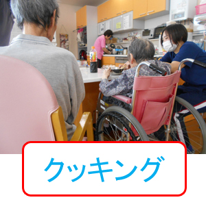 旬の材料を使った料理やお菓子など、定期的にクッキングを行い、出来上がったものを皆さんで一緒に食します。 |