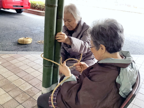 「昔は家でよく作っていたんよ」と懐かしそうに話しながら、竹の向きや飾りの配置を丁寧に確認される姿がとても印象的でした🎋💭